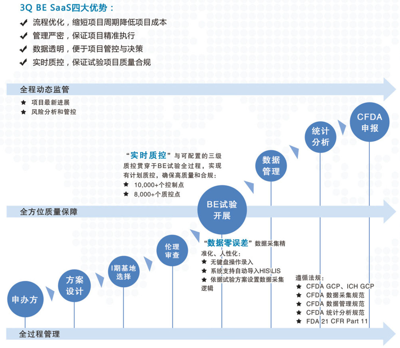 成熟的、符合CFDA GCP、FDA 21 CFR Part 11等規(guī)范的EDC SaaS、GCP PaaS、BE XaaS等技術(shù)服務(wù)平臺(tái)