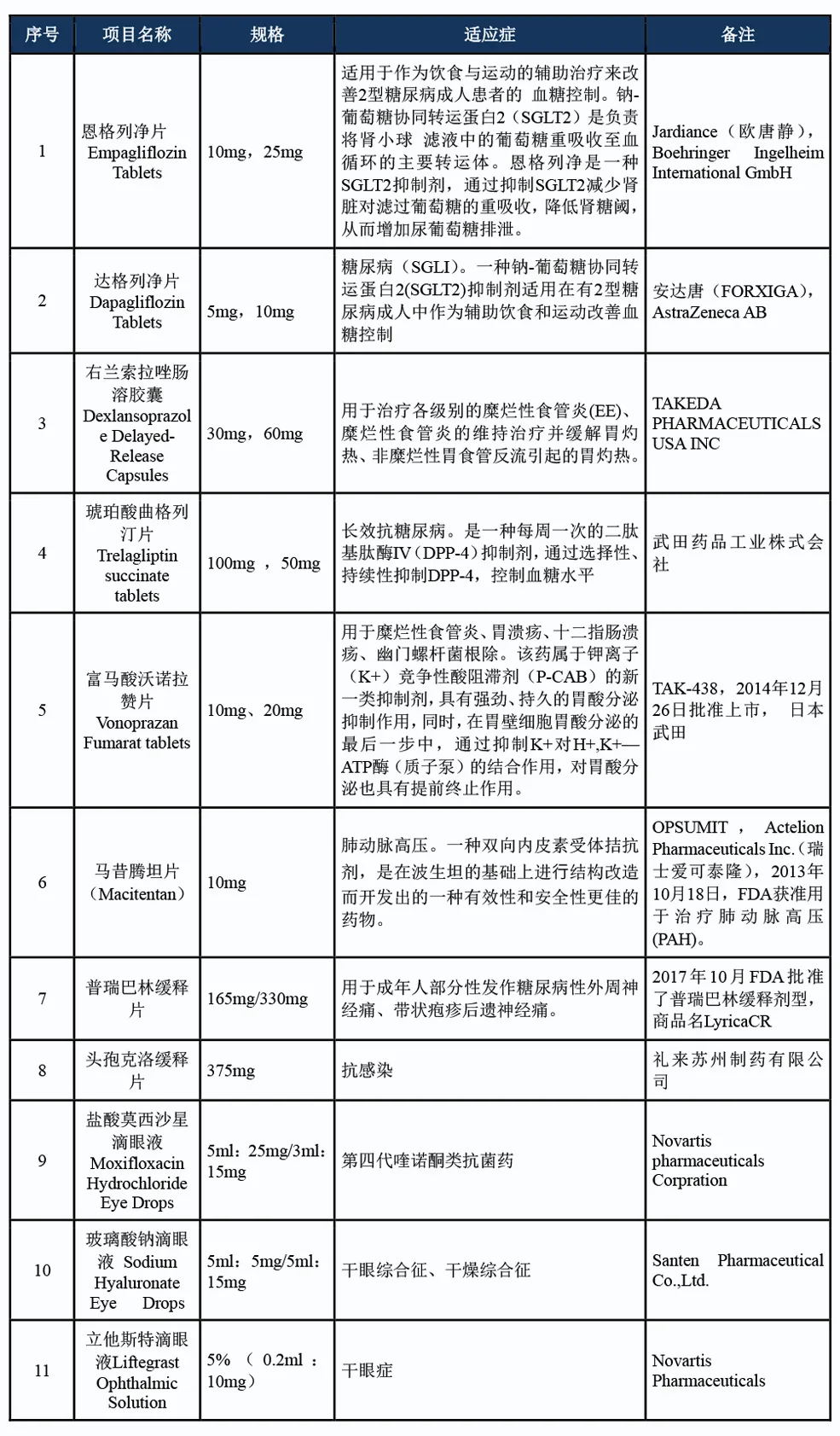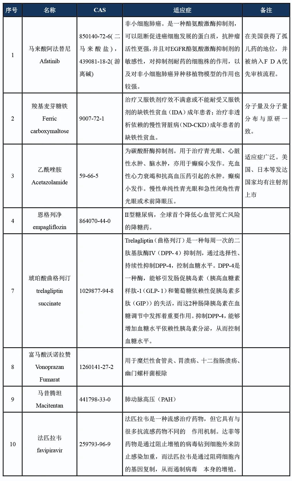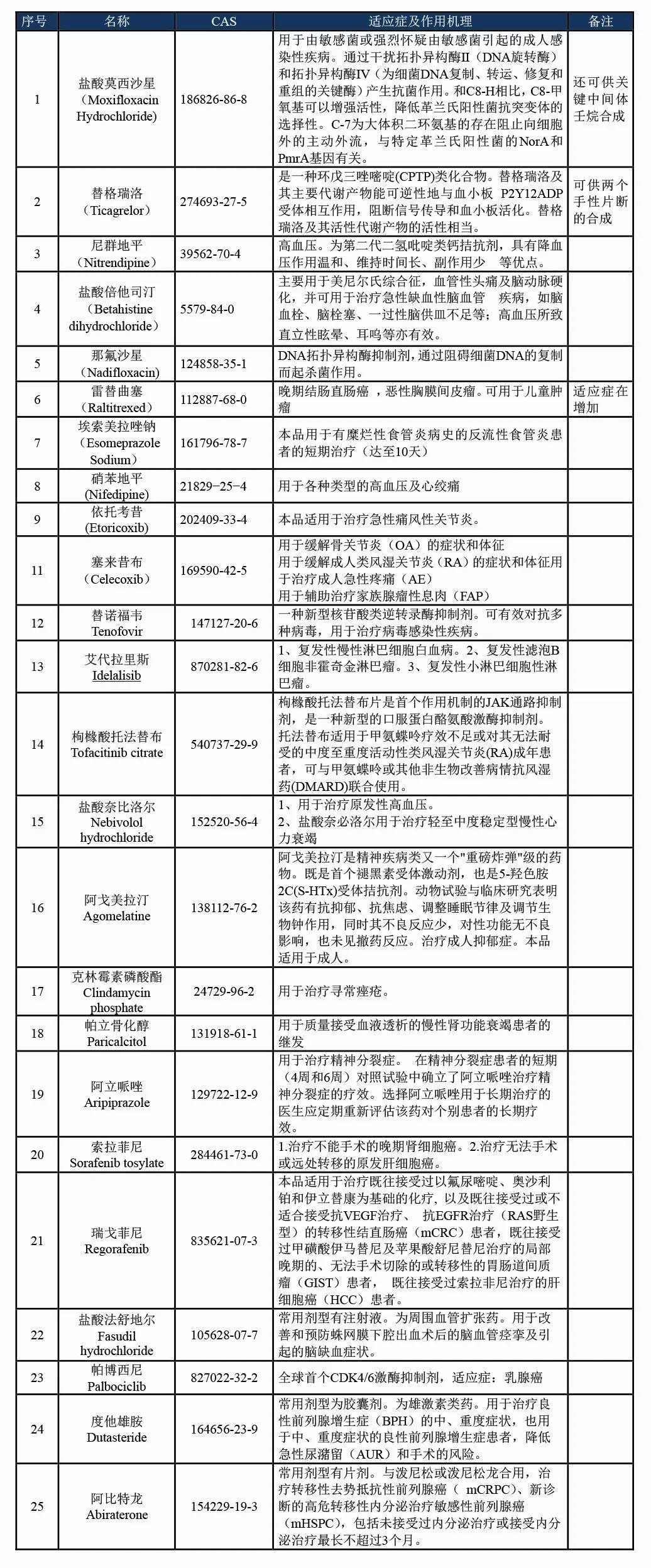 表 3:已工業(yè)化規(guī)模的API項目表